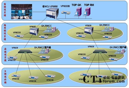 這是目前國內(nèi)最大的政府應(yīng)急視頻會議指揮系統(tǒng),現(xiàn)網(wǎng)可以借鑒的經(jīng)驗很少,華為公司充分意識到該項目的重大意義,投入大量人力物力進行網(wǎng)絡(luò)環(huán)境調(diào)研和客戶需求分析,經(jīng)過眾多專家和工程人員的反復論證,最終該套系統(tǒng)采取了分布式三級級聯(lián)組網(wǎng)結(jié)構(gòu)和四級分級分權(quán)管理模式,具有強大的備份能力和豐富的功能特性,在省和9個地市分別配置1臺8650MCU和1套管理軟件,在58個縣分別配置1臺8630 MCU,在1205個會議室分別配置1臺8033B終端。