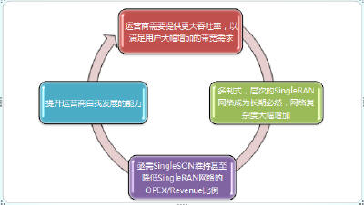 SingleSON是運營商提高多制式、多層次SingleRAN網(wǎng)絡(luò)OPEX效率的必需方案,使運營商能在滿足用戶日益增加的吞吐率需求的同時,自身能夠長期發(fā)展(如下圖所示)。