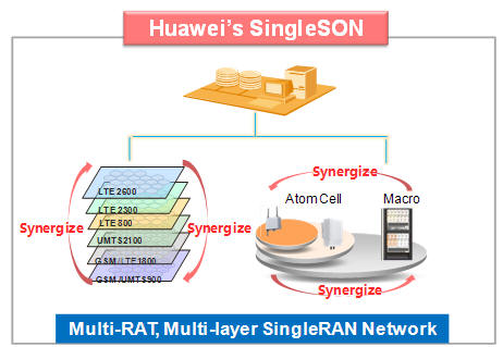 圖:SingleSON在SingleRAN網(wǎng)絡(luò)中的作用