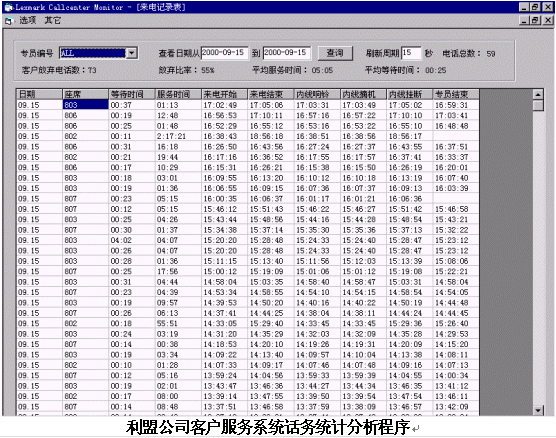 隨著利盟公司客戶服務系統(tǒng)的開通,使傳統(tǒng)的電話服務提高到了一個新的階段;一方面借助客戶服務系統(tǒng)提供的統(tǒng)計分析功能,使客戶服務中心的績效考核更加準確、高效和科學;另一方面通過應用先進的信息技術和產(chǎn)品,可以極大地提高客戶服務的質量、效率和滿意度,從而對提升公司形象,促進產(chǎn)品銷售發(fā)揮積極的作用。