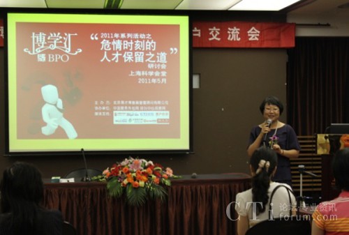 CTI論壇(ctiforum)6月3日消息(記者 張潔):2011年5月31日下午,上海科學會堂思南樓九層賓客盈門,勝友如云。易才博普奧“博學匯”系列活動之四“危情時刻的人才保留之道”研討會在輕松愉悅的氛圍中拉開帷幕。本屆“博學匯”以“人才保留”為主題,邀請了業(yè)內(nèi)權威專家及其資深從業(yè)者就人才保留這一話題展開一系列探討。會上分別從學術觀點、呼叫中心、人力資源、服務外包等諸多領域來探討人才保留的種種新途徑、新方法。