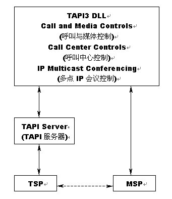TAPI Server是從TAPI 3.0和TAPI 2.1中把TSPI(Telephony Service Providers Interface)抽取出來,是為了使TAPI 3.0能夠使用TAPI 2.1 的TSP。