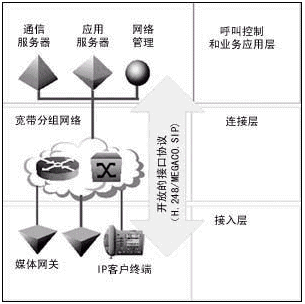 在接入層。各種媒體網(wǎng)關(guān)專職提供傳統(tǒng)終端的接入和與傳統(tǒng)網(wǎng)絡(luò)接口的功能,實(shí)現(xiàn)TDM與分組之間的轉(zhuǎn)換;新型的IP客戶終端則提供創(chuàng)新的、功能豐富的用戶界面。媒體網(wǎng)關(guān)和IP客戶終端還負(fù)責(zé)承載通道的建立功能,通過H.248/MEGACO、SIP等開放的接口協(xié)議在通信服務(wù)器和應(yīng)用服務(wù)器的控制和協(xié)調(diào)下為媒體流建立滿足服務(wù)質(zhì)量要求的承載通道。
