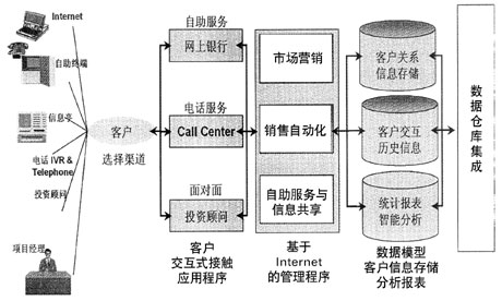 靈活的業(yè)務(wù)流程處理: 銀行的目標(biāo)是在所有與客戶接觸的渠道上(包括電話、網(wǎng)絡(luò)等),都建立起統(tǒng)一的客戶服務(wù)手段,實(shí)現(xiàn)對(duì)不同業(yè)務(wù)的處理要求。如何利用科學(xué)的分析,預(yù)測(cè)客戶的行為,保證對(duì)客戶的一致性承諾,是銀行發(fā)展客戶關(guān)系必須考慮的第二個(gè)問(wèn)題。