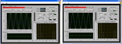 當(dāng)兩個(或多個)設(shè)備一起工作并對時間有精確要求的時候,就需要在它們之間進(jìn)行同步。同步是基于在兩個設(shè)備之間規(guī)定一個共同的時間參考,試想如果將不同音軌的音頻訊號分別錄在不同的磁帶機(jī)上,則必須將這兩個磁帶機(jī)的磁帶傳送軸鎖定在一起,否則將來撥放出來就會有相位上的誤差,這個過程就稱為同步。假使這兩個設(shè)備沒有進(jìn)行同步,無論它們開始的時間多么一致,也會由于兩臺設(shè)備在機(jī)械結(jié)構(gòu)的差異而產(chǎn)生時間漂移。同樣的,對于數(shù)據(jù)采集卡也是一樣的概念,甚至在要求上更為嚴(yán)格。而如何達(dá)到數(shù)據(jù)同步采集,最基本的要求就是不同模塊間要有相同的工作時脈與一致的觸發(fā)信號,而這個相同的時脈信號需來自于共同的外部儀器。下圖中的弦波是兩張數(shù)據(jù)采集卡在同步與異步采集同一信號源所得的波形,在左圖中因異步而存在一向位差,右圖中則是同步觸發(fā)下得到完全重迭的波形。