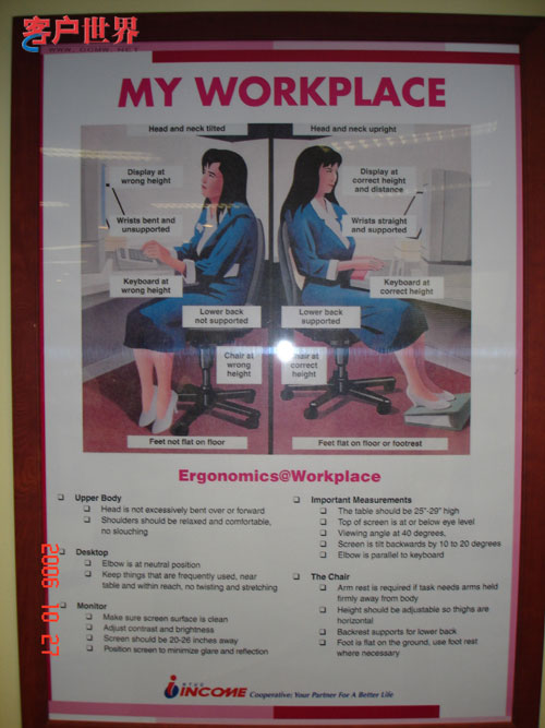 第三,不良座席設(shè)置,包括過(guò)低的顯示屏容易使人產(chǎn)生頸椎病,不可調(diào)節(jié)的座椅和不良坐姿影響脊椎健康,不舒服的溫度和濕度以及燈光容易使人產(chǎn)生疲勞和慢性倦怠,等等。