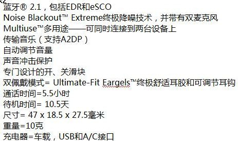 Jabra STONE的主要特性和規(guī)格包括: