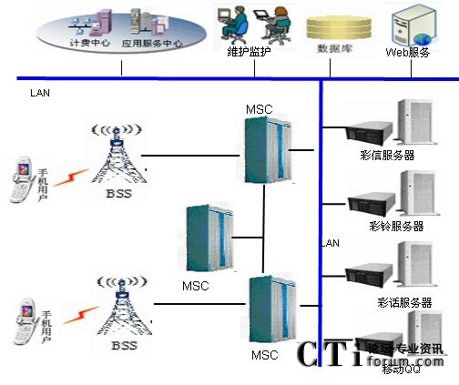 下圖是研祥智能科技股份有限公司采用CompactPCI計(jì)算機(jī)硬件平臺提供的電信增值業(yè)務(wù)解決方案從方框圖:電信用戶通過交換中心(MSC)向各個(gè)服務(wù)器(彩信、彩鈴、彩話、移動QQ)提取信息,服務(wù)器由研祥CPCI產(chǎn)品構(gòu)成。主控業(yè)務(wù)邏輯運(yùn)行的功能實(shí)體,管理和控制平臺業(yè)務(wù)的運(yùn)行、對業(yè)務(wù)腳本進(jìn)行管理并對業(yè)務(wù)進(jìn)行監(jiān)控和統(tǒng)計(jì),同時(shí)計(jì)費(fèi)中心向用戶計(jì)費(fèi)。