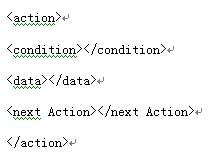 該節(jié)點(diǎn)的約束條件配置到節(jié)點(diǎn)中,當(dāng)前的數(shù)據(jù)和業(yè)務(wù)邏輯配置到[data]節(jié)點(diǎn)中,邏輯的跳轉(zhuǎn)[next Acton]定義著。這樣業(yè)務(wù),數(shù)據(jù),業(yè)務(wù)關(guān)系就通過(guò)這種方式串接起來(lái)。客戶端處理程序按照[condition]定義好的條件處理當(dāng)前[data]節(jié)點(diǎn)中的數(shù)據(jù)后得到一些新數(shù)據(jù)。
