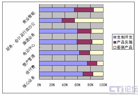 第三種策略是產(chǎn)品實(shí)施方式,即在產(chǎn)品化信息系統(tǒng)基礎(chǔ)上通過對企業(yè)業(yè)務(wù)現(xiàn)狀的分析規(guī)劃為企業(yè)定制滿足業(yè)務(wù)需求的信息系統(tǒng),該種方式將企業(yè)業(yè)務(wù)規(guī)劃與信息化過程相統(tǒng)一,縮短信息化周期,降低信息化風(fēng)險(xiǎn),對于未來企業(yè)業(yè)務(wù)的發(fā)展能夠通過保護(hù)既往投資的方式靈活應(yīng)對。目前這三種不同信息化策略在保險(xiǎn)企業(yè)各業(yè)務(wù)單元應(yīng)用的情況如下圖所示。