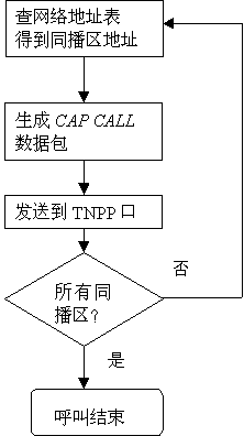 本地呼叫登記了同播功能的本地機(jī)時(shí), 自動(dòng)臺(tái)通過(guò)PCM數(shù)字中繼, 從MFC信號(hào)中取到BP機(jī)號(hào)及主叫電話(huà)號(hào)碼, 或從用戶(hù)DTMF撥號(hào)中得到信息碼,形成發(fā)呼串送到發(fā)呼工作站,由發(fā)呼工作站根據(jù)同播區(qū)號(hào),往所有的自動(dòng)臺(tái)發(fā)CAP CALL,后面的呼叫過(guò)程就由同播地自動(dòng)臺(tái)來(lái)完成。同播區(qū)可以為包括本地區(qū)的多個(gè)區(qū)。下圖中TNPP口可以為本地TNPP端口或聯(lián)網(wǎng)TNPP端口。