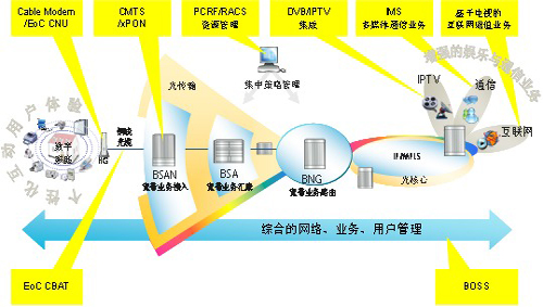 新興的融合業(yè)務(wù)特別是基于視頻的多媒體業(yè)務(wù)將是廣電在三網(wǎng)融合的大潮中抓住機遇,吸引更多用戶,提高網(wǎng)絡(luò)盈利能力的重要基石。從原來單向廣播接入網(wǎng)向雙向、大帶寬的接入網(wǎng)演進。作為寬帶接入市場的領(lǐng)導者,我們提供基于廣電同軸電纜網(wǎng)絡(luò)特性的完整接入解決方案,實現(xiàn)從光纖到小區(qū)、光纖到樓、光纖到戶等各種接入方式,滿足各種場景的需求。