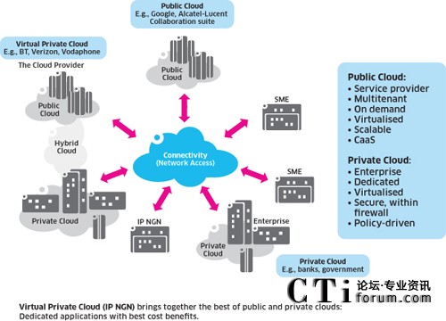通信服務(wù)提供商非常適合定位于提供云服務(wù),阿爾卡特朗訊企業(yè)部,產(chǎn)品營(yíng)銷,通信解決方案副總裁(如優(yōu)先級(jí)和應(yīng)用程序的緩存)。對(duì)于企業(yè)客戶,他們可以建立虛擬私有云,或簡(jiǎn)單地成為純粹的云服務(wù)提供商,通過(guò)聚合資源,基于基礎(chǔ)設(shè)施為許多組織同時(shí)提供服務(wù)。
