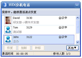 呼叫保持、轉(zhuǎn)移、掛斷: