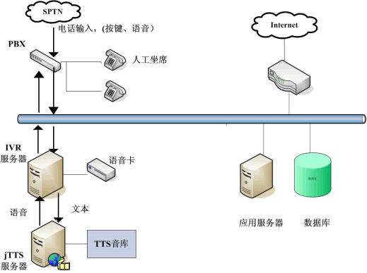 jTTS在12320中的應(yīng)用主要表現(xiàn)在查詢結(jié)果的語(yǔ)音返回和服務(wù)信息的發(fā)布上。只要將捷通TTS服務(wù)器集成到現(xiàn)有的IVR系統(tǒng)中,并且在IVR服務(wù)端設(shè)置好預(yù)讀出的文本即可。眾所周知,“12320”公益服務(wù)熱線需要提供海量關(guān)于我國(guó)公共衛(wèi)生相關(guān)法律法規(guī)、各種重大疾病的預(yù)防保健知識(shí)的宣傳和咨詢服務(wù),如果采用傳統(tǒng)人工座席或請(qǐng)專業(yè)播音人員錄音,費(fèi)時(shí)費(fèi)力,且投入較大。用語(yǔ)音合成技術(shù)(TTS)來(lái)解決,用戶提交查詢請(qǐng)求,IVR服務(wù)器收到請(qǐng)求后會(huì)向其他應(yīng)用服務(wù)器提交,當(dāng)IVR得到查詢結(jié)果后,將文本形式的查詢結(jié)果交給jTTS服務(wù)器,jTTS服務(wù)器返回查詢結(jié)果的語(yǔ)音形式,最終語(yǔ)音在坐席上播放,用戶就可以聽(tīng)到所要查詢的信息(如圖)。這樣市民可以24小時(shí)撥打熱線,查詢各方面的內(nèi)容,不受時(shí)間限制,既節(jié)約政府開支,為民辦實(shí)事,而且在最大程度上提高了辦事效率,樹立了良好的政府形象。