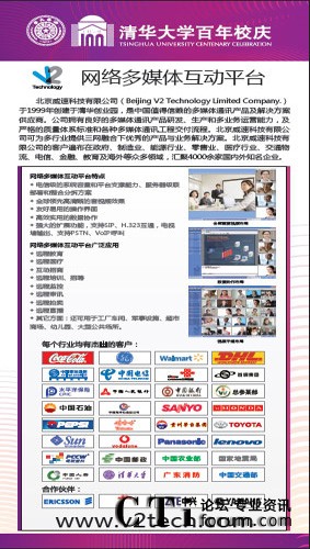 CTI論壇(ctiforum)5月3日消息(記者 張潔): 天行健,君子以自強(qiáng)不息,地勢坤,君子以厚德載物。2011年4月23日,清華大學(xué)迎來百年華誕。在建校百年之際,V2威速聯(lián)合母校----清華大學(xué)百年校慶辦展出了V2網(wǎng)絡(luò)多媒體互動(dòng)平臺(tái)。V2威速眾多旗艦產(chǎn)品之一----V2網(wǎng)絡(luò)多媒體互動(dòng)平臺(tái)始創(chuàng)于1999年清華大學(xué)第二屆“大學(xué)生創(chuàng)業(yè)比賽”。同年,V2威速于清華創(chuàng)業(yè)園創(chuàng)立,經(jīng)過11年的發(fā)展,V2威速已是中國值得信賴的多媒體通訊產(chǎn)品及解決方案供應(yīng)商。