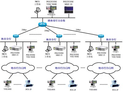 建成后的新湖南省農(nóng)業(yè)銀行視頻會(huì)議系統(tǒng)圖