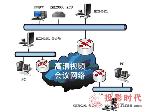 - 采用2Mbps專(zhuān)線(xiàn)方式組網(wǎng),實(shí)現(xiàn)全高清視頻會(huì)議