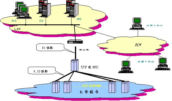 由于N7MS開發(fā)了多種類型的網(wǎng)元通信接口,如X.25,TCP/IP,RS232,加之系統(tǒng)采用分布式的模塊化設計,因此組網(wǎng)方式非常靈活。 能夠按照信令網(wǎng)絡和通信網(wǎng)絡的實際情況采用不同的組網(wǎng)方案來滿足用戶需要。