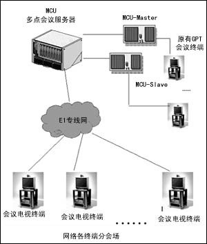 對用戶來說,本方案優(yōu)勢在于:保持原有網(wǎng)絡(luò)結(jié)構(gòu)不變,充分利用原有系統(tǒng)設(shè)備(包括MCU和終端);保持政府會議繼續(xù)采用專線網(wǎng)絡(luò),安全性、穩(wěn)定性高;使用E1/2M傳輸專線,保證會議的圖像和聲音質(zhì)量;該系統(tǒng)同時支持H.320/H.321/H.323協(xié)議,即可同時采用E1專線,ISDN撥號,IP網(wǎng)、ATM網(wǎng)等方式開會,將來能夠靈活、平滑擴展到各種系統(tǒng)中去,最大地保護了用戶的投資和資源。