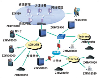 中興通訊寬帶高清晰度多媒體視訊系統(tǒng)采用MPEG-2和多信道協(xié)同處理技術(shù),通過(guò)寬帶傳輸網(wǎng)絡(luò),提供實(shí)時(shí)、雙向、交互式的可視會(huì)議服務(wù)。其核心是位于網(wǎng)絡(luò)中心的ZXMVC8900多媒體視訊服務(wù)器和ZXMVC 6000高清晰度會(huì)議電視終端設(shè)備。同時(shí)還能接入H.320、H.323類型的會(huì)議電視終端,并結(jié)合流媒體服務(wù)模塊。