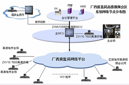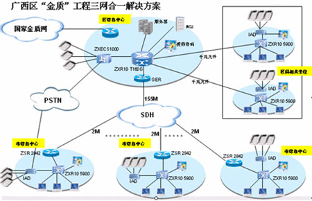 根據(jù)國家“金質(zhì)工程”五年規(guī)劃,結(jié)合廣西壯族自治區(qū)質(zhì)量技術(shù)監(jiān)督局實(shí)際情況,廣西“金質(zhì)工程”(一期)的建設(shè)目標(biāo)非常明確:以區(qū)質(zhì)監(jiān)局為核心,連接3個下屬研究院、14個地市質(zhì)監(jiān)局和1個產(chǎn)品質(zhì)監(jiān)院的質(zhì)監(jiān)業(yè)務(wù)專網(wǎng),支持?jǐn)?shù)據(jù)、語音和視頻業(yè)務(wù)的統(tǒng)一系統(tǒng)平臺。并以此平臺為基礎(chǔ),實(shí)現(xiàn)多業(yè)務(wù)的綜合接入,如質(zhì)監(jiān)信息的建立、管理、查詢,以及IP語音、視頻會議等。
