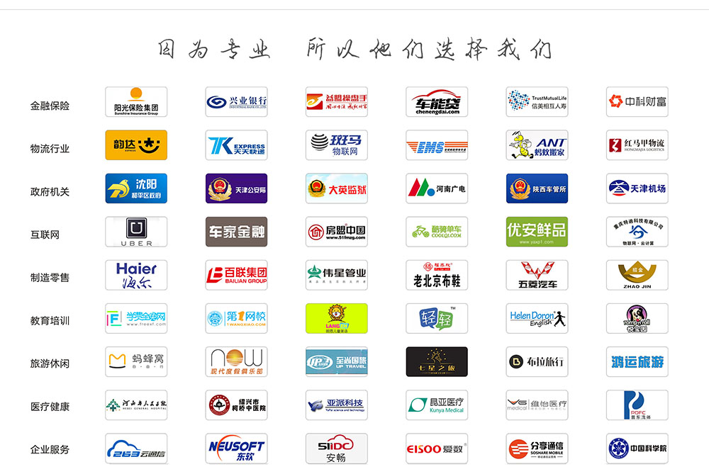 銀行、保險(xiǎn)、政府、互聯(lián)網(wǎng)金融、交通等幾百家企業(yè)