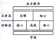 業(yè)務層的基本功能是在由傳送層提供的“電路”中把負荷進行“整形”并進行信息的交換,其目標是提升每一個比特的價值。業(yè)務層被橫切為邊緣和核心兩大部分,界線是10萬分組/s。在業(yè)務層,數(shù)據(jù)分組被單獨處理或者作為“流”(與特定用戶或應用相關的分組串)來處理,老的技術(shù)包括幀中繼和ATM,新的技術(shù)MPLS有可能成為ATM的替代技術(shù)。
