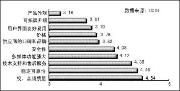 CCID對視頻會議現(xiàn)狀調(diào)查結(jié)果顯示,與以往相比,用戶對視頻會議終端系統(tǒng)的選擇標準已經(jīng)發(fā)生了變化。用戶除了一如既往地要求很好的音視頻質(zhì)量外,對產(chǎn)品的穩(wěn)定可靠性、技術(shù)支持和售后服務(wù)、多媒體功能、安全性四項也有要求。其中,用戶對視頻會議終端系統(tǒng)的多媒體功能和設(shè)備的可拓展升級提出了更高的要求,而不再局限于視音頻質(zhì)量和穩(wěn)定、可靠性上,對多媒體功能的需求在不斷地增長。更多的用戶不僅把會議系統(tǒng)用于視音頻開會,更將視頻會議的多媒體功能作為采購的重要指標之一。
