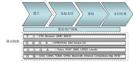 Supplementary Service Data)等。下圖可以更好的解釋移動(dòng)支付的建立過(guò)程以及涉及到的移動(dòng)架構(gòu)。