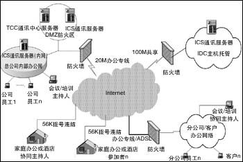 當“非典”來臨之際,正是用友公司原計劃進行用友ERP產(chǎn)品系列解決方案市場發(fā)布的時刻。經(jīng)過對市場上各種平臺的反復比較,在淘汰了視頻會議解決方案、衛(wèi)星解決方案、寬帶交互方案等成本高昂、接入繁瑣、無法適應(yīng)窄帶互聯(lián)網(wǎng)接入手段一類的產(chǎn)品后,用友公司將目光鎖定在方正全訊通(IW ECP)這樣一個即能夠滿足寬帶接入也能夠使用撥號網(wǎng)絡(luò)的音頻、視頻、數(shù)據(jù)、白板全面溝通和協(xié)作的平臺。