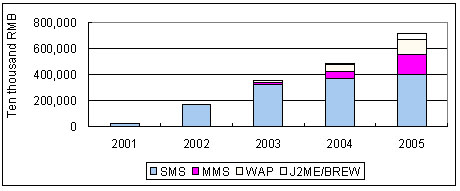 由于SMS、MMS、J2ME/BREW能帶來的收入較為可觀,目前整個移動增值服務價值鏈的資金主要流向該三類業(yè)務。在SMS領(lǐng)域,產(chǎn)業(yè)鏈合作活躍,SP對游戲、交友、鈴聲、圖片等業(yè)務的投入很大;MMS適合點對點應用以及信息點播服務,市場潛力也很大;J2ME/BREW則以開發(fā)交互式業(yè)務為主,同時因是未來發(fā)展方向,屬于戰(zhàn)略性產(chǎn)品,倍受產(chǎn)業(yè)鏈的重視;WAP產(chǎn)品在移動增值服務市場上將長期存在,但占整個移動增值服務市場的份額比較低。