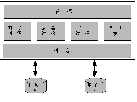 由華南理工大學(xué)自主研究開發(fā)的MATRIX郵件處理系統(tǒng),是專門針對垃圾郵件和病毒郵件的產(chǎn)品。它采用模塊化結(jié)構(gòu)和標(biāo)準(zhǔn)的軟硬件工業(yè)結(jié)構(gòu)設(shè)計,具有擴(kuò)充方便,可以迅速升級的特點,同時該系統(tǒng)采用最新的垃圾過濾網(wǎng)關(guān)攔截技術(shù),具有很強的適用性,適用于各種郵件服務(wù)器系統(tǒng)如Sendmail、MS Exchange等。系統(tǒng)功能包括: