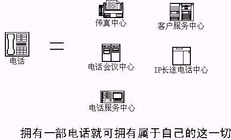 該方法的實(shí)施,可以讓每一個(gè)電話和強(qiáng)大的CTI系統(tǒng)聯(lián)系,一部電話將變成語(yǔ)音系統(tǒng)、傳真系統(tǒng)、電話會(huì)議系統(tǒng)、……。擁有這一切用戶(hù)只需要支付呼叫轉(zhuǎn)移的費(fèi)用?梢栽O(shè)想,以后開(kāi)辦公司,只要申請(qǐng)電話,擁有ADSL上網(wǎng)的電腦,用戶(hù)在辦公室、在家,打開(kāi)電腦,單擊進(jìn)入自己的語(yǔ)音系統(tǒng)、會(huì)議系統(tǒng),宣傳公司,召開(kāi)會(huì)議,發(fā)送傳真。公司擁有、使用自己的、電信級(jí)的CTI系統(tǒng);所有CTI應(yīng)用系統(tǒng)的開(kāi)發(fā),語(yǔ)音部分完全由電話接入服務(wù)商提供,……。
