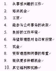 在對員工關心的十個指標的調(diào)研、統(tǒng)計分析后發(fā)現(xiàn),在企業(yè)提供良好的培訓體系前提下,人員的流失與企業(yè)提供的薪酬有必然的關系。各因素影響程度由高到低排序如下: