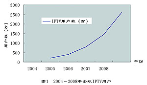 圖1 2004-2008年全球IPTV用戶(hù)發(fā)展預(yù)測(cè)