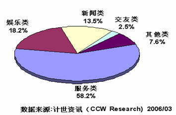 2006年,IVR業(yè)務(wù)的發(fā)展已經(jīng)具備了良好的外部條件。首先,具有龐大的潛在用戶群。有關(guān)統(tǒng)計(jì)顯示,截至2005年11月,中國(guó)移動(dòng)用戶數(shù)量達(dá)到3.88億,固定電話用戶數(shù)量達(dá)到3.51億,其中無(wú)線市話用戶數(shù)量達(dá)到8622萬(wàn)。其次,市場(chǎng)容量急劇膨脹;再次,業(yè)務(wù)收入快速增長(zhǎng);最后,IVR不受手機(jī)型號(hào)的限制,潛在用戶的普及率極高。這些使得IVR具有良好的發(fā)展?jié)摿,?jì)世資訊(CCW Research)認(rèn)為,IVR是繼短信(SMS)之后的又一座大型金礦。