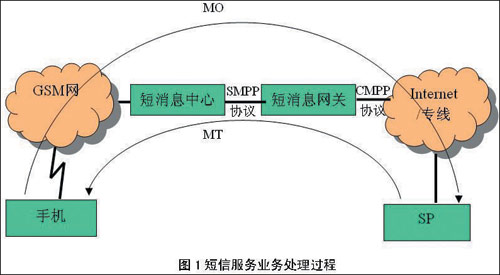 用戶收短信業(yè)務(wù)(即MT業(yè)務(wù),如短信群發(fā)等):提供此項(xiàng)業(yè)務(wù)的SP將短信內(nèi)容以CMPP協(xié)議發(fā)給連接的短信網(wǎng)關(guān),由短信網(wǎng)關(guān)根據(jù)用戶手機(jī)號段以SMPP協(xié)議發(fā)給用戶所屬的短信中心;