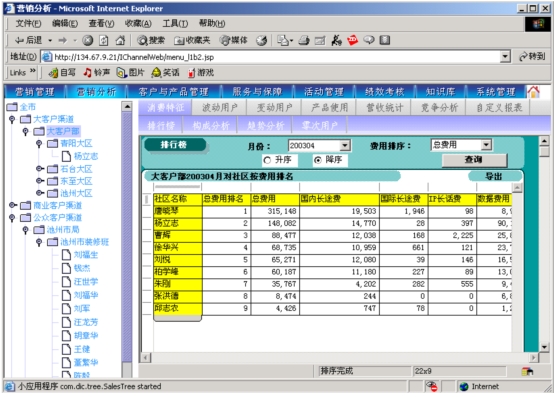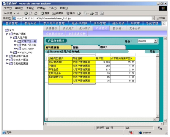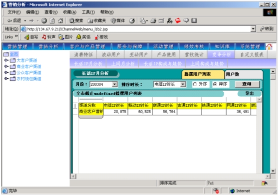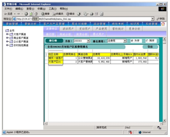 本系統(tǒng)是以市場為導向、客戶為中心、效益為目標的電信營銷和服務的支撐系統(tǒng),為企業(yè)經營服務和營銷戰(zhàn)略提供有力的支撐,通過對業(yè)務收入、業(yè)務發(fā)展以及市場競爭的深入分析,從而達到留住老客戶、發(fā)現(xiàn)新客戶,了解競爭對手動態(tài),及時掌握市場變化趨勢的目的。