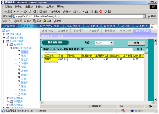 對于客戶的故障、投訴,營銷服務支撐系統(tǒng)及時從1000號客戶服務系統(tǒng)獲取信息,及時獲取派發(fā)的工單,及時解決客戶問題,并能夠跟蹤故障、投訴解決情況。通過數(shù)據(jù)分析,掌握企業(yè)的服務質量。
