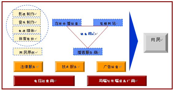 對于互聯(lián)網(wǎng)來講,網(wǎng)絡(luò)視頻代表網(wǎng)絡(luò)內(nèi)容展現(xiàn)形式的變革,而這種變革將帶動一個(gè)產(chǎn)業(yè)鏈條的發(fā)展,同時(shí)產(chǎn)業(yè)鏈條各個(gè)環(huán)節(jié)也會反過來制約網(wǎng)絡(luò)視頻的發(fā)展。2006年以前的中國網(wǎng)絡(luò)視頻發(fā)展處于一個(gè)初級階段,聚集網(wǎng)民注意力,形成網(wǎng)民對網(wǎng)絡(luò)視頻內(nèi)容的瀏覽習(xí)慣是這個(gè)階段網(wǎng)絡(luò)視頻發(fā)展的核心。但是因?yàn)樯虡I(yè)模式的不成熟,網(wǎng)絡(luò)視頻盈利能力弱的基本原因,產(chǎn)業(yè)鏈條中的多個(gè)環(huán)節(jié)都成了抑制網(wǎng)絡(luò)視頻發(fā)展的因素。例如:寬頻形式對網(wǎng)絡(luò)資源的要求一方面加大了寬頻內(nèi)容運(yùn)營的成本,另一方面對網(wǎng)民終端的網(wǎng)絡(luò)條件要求也明顯高于以前的網(wǎng)絡(luò)條件,而這些問題要求電信運(yùn)營商既要降低基礎(chǔ)網(wǎng)絡(luò)資源的價(jià)格又要提高網(wǎng)絡(luò)資源的質(zhì)量,這些工作和讓步短時(shí)間內(nèi)電信運(yùn)營商很難完成,寬頻內(nèi)容運(yùn)營商的運(yùn)營成本就保持居高不下而網(wǎng)民的網(wǎng)絡(luò)視頻效果就差強(qiáng)人意了。像這樣充滿著矛盾因素的抑制環(huán)節(jié)在整個(gè)產(chǎn)業(yè)鏈條中還有很多,因此2006年以前的中國網(wǎng)絡(luò)視頻發(fā)展沒有突破產(chǎn)業(yè)束縛進(jìn)入發(fā)展的快車道。