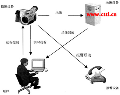 視頻監(jiān)控的基本業(yè)務(wù)功能是提供實時監(jiān)視的手段,并對被監(jiān)視的畫面進行錄像存儲,以便事后回放。在此基礎(chǔ)上,高級的視頻監(jiān)控系統(tǒng)可以對監(jiān)控裝置進行遠程控制,并能接收報警信號,進行報警觸發(fā)與聯(lián)動。業(yè)務(wù)功能如圖1所示。