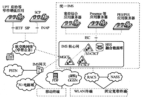 從國際標(biāo)準(zhǔn)化組織的研究來看,IMS的網(wǎng)絡(luò)架構(gòu)是覆蓋3G終端和固定寬帶終端的統(tǒng)一IMS。3GPPR7研究的是支持移動和固定接入的統(tǒng)一IMS,ETSI