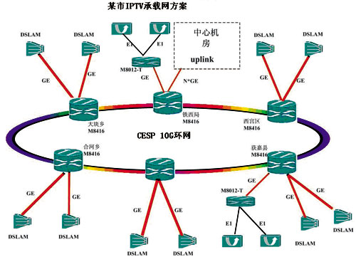 隨著IPTV業(yè)務(wù)的迅速發(fā)展,IPTV承載網(wǎng)建設(shè)顯得尤其重要。IPTV承載的最主要內(nèi)容包括VOD(視頻點播)及直播電視頻道節(jié)目。為保證IPTV的收看質(zhì)量與目前的有線電視網(wǎng)收看質(zhì)量相當,IPTV承載網(wǎng)必須要在網(wǎng)絡(luò)帶寬、網(wǎng)絡(luò)可靠性、頻道切換時延、網(wǎng)絡(luò)QoS等方面提供保證。