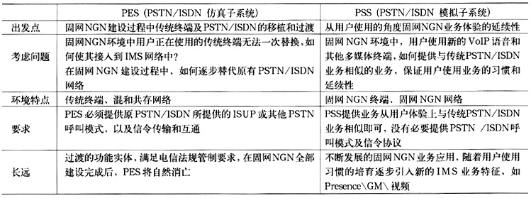 業(yè)務(wù)層的PSS和PES子系統(tǒng)針對(duì)不同的終端類(lèi)型和業(yè)務(wù)需求而設(shè)計(jì)。使用PSS和PES主要目的是使寬窄帶域完全分離,即SIP用戶(hù)通過(guò)PSS子系統(tǒng)完成接入和業(yè)務(wù)提供,窄帶用戶(hù)通過(guò)PES子系統(tǒng)完成接入和業(yè)務(wù)提供。具體比較如表2所示。