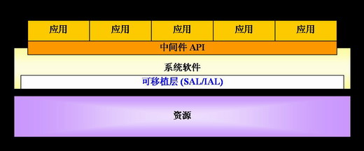從一個(gè)抽象的觀點(diǎn)來(lái)看,如果把平臺(tái)的邏輯資源映射到一個(gè)或者幾個(gè)硬件實(shí)體,那從上層的應(yīng)用來(lái)看,平臺(tái)就是統(tǒng)一的了;借助系統(tǒng)軟件層的可移植層,底層資源能透明地提供給應(yīng)用層使用,任何一個(gè)應(yīng)用可以自由地把底層同類的不同的資源看作一個(gè)特定的實(shí)體元素,基于統(tǒng)一的接口,非常方便地去訪問(wèn)這些資源。