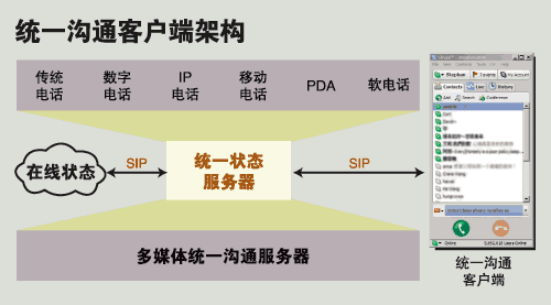 從MSN、QQ提供的語音聊天到曾經(jīng)風(fēng)靡一時(shí)的Skype,再到今天思科、北電、微軟、Avaya等推出的統(tǒng)一溝通桌面客戶端系統(tǒng),通信的“最后一公里”發(fā)生了根本的轉(zhuǎn)變。原來為了節(jié)省長(zhǎng)途話費(fèi)而設(shè)計(jì)的VoIP,今天和ERP、CRM一樣成為了以提高企業(yè)運(yùn)營(yíng)效率為目的的核心生產(chǎn)力系統(tǒng)。統(tǒng)一溝通最令人憧憬的未來是給最終用戶提供一個(gè)友好的通信界面:“所有的信息源匯總到一起,而用什么方式來取得這個(gè)信息,只要在手邊最方便的工具上輕輕點(diǎn)擊就OK了!