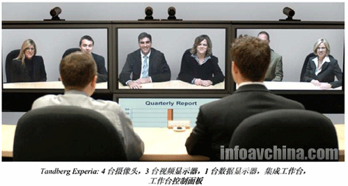 MXP信號編解碼器、4臺高分辨率攝像頭和3臺50英寸的等離子顯示器,用戶播放視頻內(nèi)容,1臺50英寸等離子顯示器安放在中央視頻顯示屏幕下方,顯示數(shù)據(jù)信息。同時,Experia系統(tǒng)還包括了遠(yuǎn)程呈現(xiàn)控制臺,為用戶提供了三種木制造型選擇,控制臺上的3臺麥克風(fēng)構(gòu)成了音頻系統(tǒng)。系統(tǒng)每通信站點(diǎn)支持6位與會者參與會議。與其它遠(yuǎn)程呈現(xiàn)系統(tǒng)一樣,Experia在聲音和圖像方面的性能非常出色,系統(tǒng)使用簡單、穩(wěn)定可靠。泰德的遠(yuǎn)程呈現(xiàn)系統(tǒng)雖然采用與寶利通類似的H.323/SIP標(biāo)準(zhǔn),在系統(tǒng)與業(yè)界標(biāo)準(zhǔn)的協(xié)同工作以及用戶之間互聯(lián)互通的性能方便似乎更勝一籌。