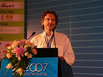 下圖為中國(guó)-歐盟信息社會(huì)項(xiàng)目組法學(xué)專(zhuān)家托馬斯·哈特博士談歐洲監(jiān)管經(jīng)驗(yàn)。