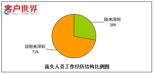 8.流失人員的工作經(jīng)歷結(jié)構(gòu)比例2(是否剛來深圳)